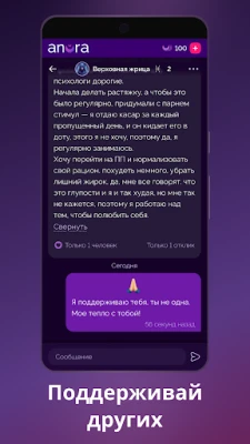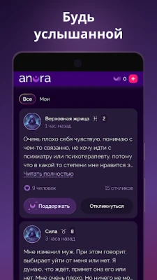 Открийте Anora – приложение за жени, създадено за подкрепа, разбиране и споделяне. Намерете безопасно пространство, където да изразите мисли и чувства, да получите искрен отклик и да почувствате, че не сте сами. Свържете се с други жени и създайте общност на топлина и внимание.