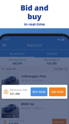 Вземайте решения с пълна увереност, благодарение на изчерпателните описания, множество детайлни снимки и видеоклипове на двигатели за всяка кола. Участвайте в търгове или правете моментални покупки по всяко време и от всяко място, без никакви минимални изисквания. С известия в реално време за нови наддавания и най-добри оферти, AUTO1.com Ви дава пълен контрол и възможност да повишите офертата си своевременно. Насладете се на безпроблемна синхронизация между всичките си устройства, осигурявайки непрекъснат достъп и актуална информация навсякъде.