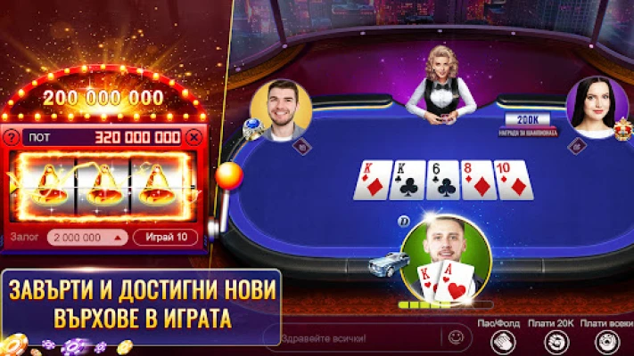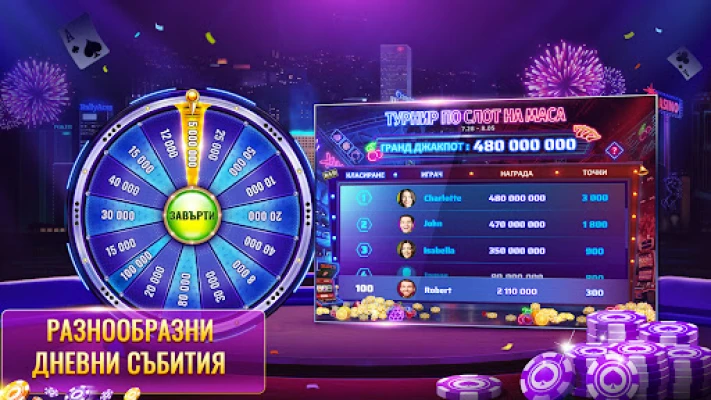 Изградете истински връзки с други ентусиасти от родината, като общувате на живо по време на игра. Изразете се с анимирани емотикони и изпращайте подаръци, за да блъфирате, аплодирате или просто да се пошегувате със съперниците си. Предизвикайте приятели и се изкачвайте по върховете на Лигата, печелейки признание и ексклузивни награди. Развихрете се на нашия страхотен 5x3 слот или мини слотовете на маса, отключвайки премиум бонуси и функции като част от нашия VIP клуб. Събирайте колекционерски пръстени и баджове, изпълнявайте мисии и участвайте в специални сезонни събития. Благодарение на безпроблемната синхронизация с Google, Apple или Facebook, вашият акаунт и чипове са винаги налични на всичките ви устройства.